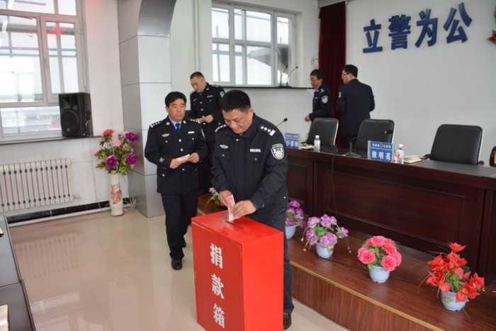 8月10日,绥滨县人民法院联合县公安局、检察院共同开展向“时代楷模”孙波同志捐款活动。