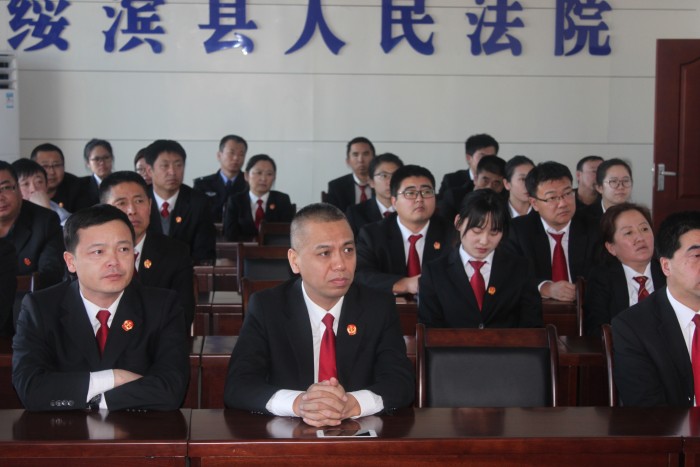《大法官开庭》是依法治国部署下的重大改革举施,为落实十九大报告提出的建设中国特色社会主义法治国家,2017年12月5日,绥滨县人民法院组织全体干警收看中央一套播出的《今日说法》之《大法官开庭—无法回头下》。