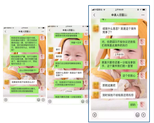 2月13日绥滨县法院执行干警就通过微信方式达成了一起案件的执行和解协议。
