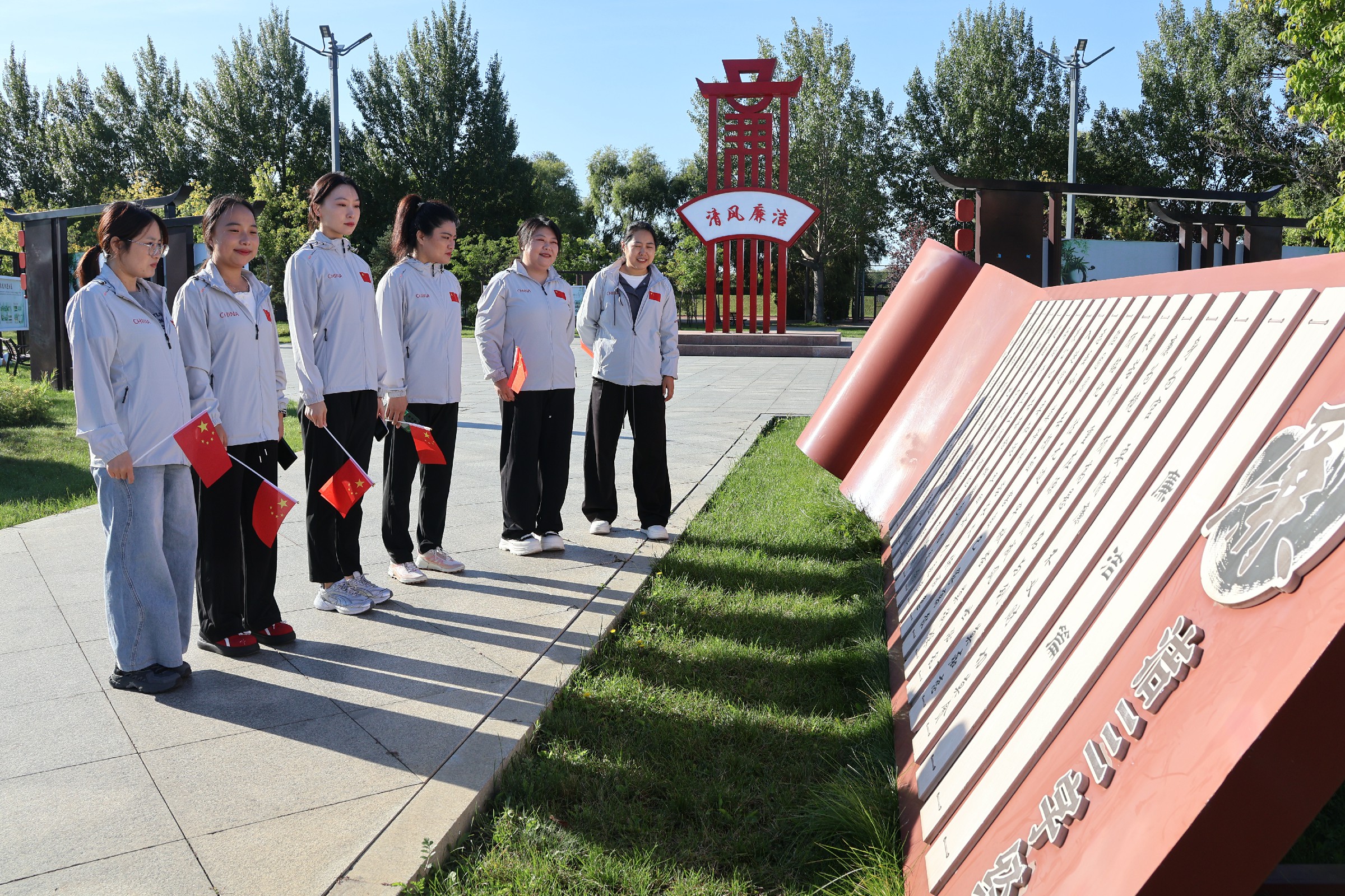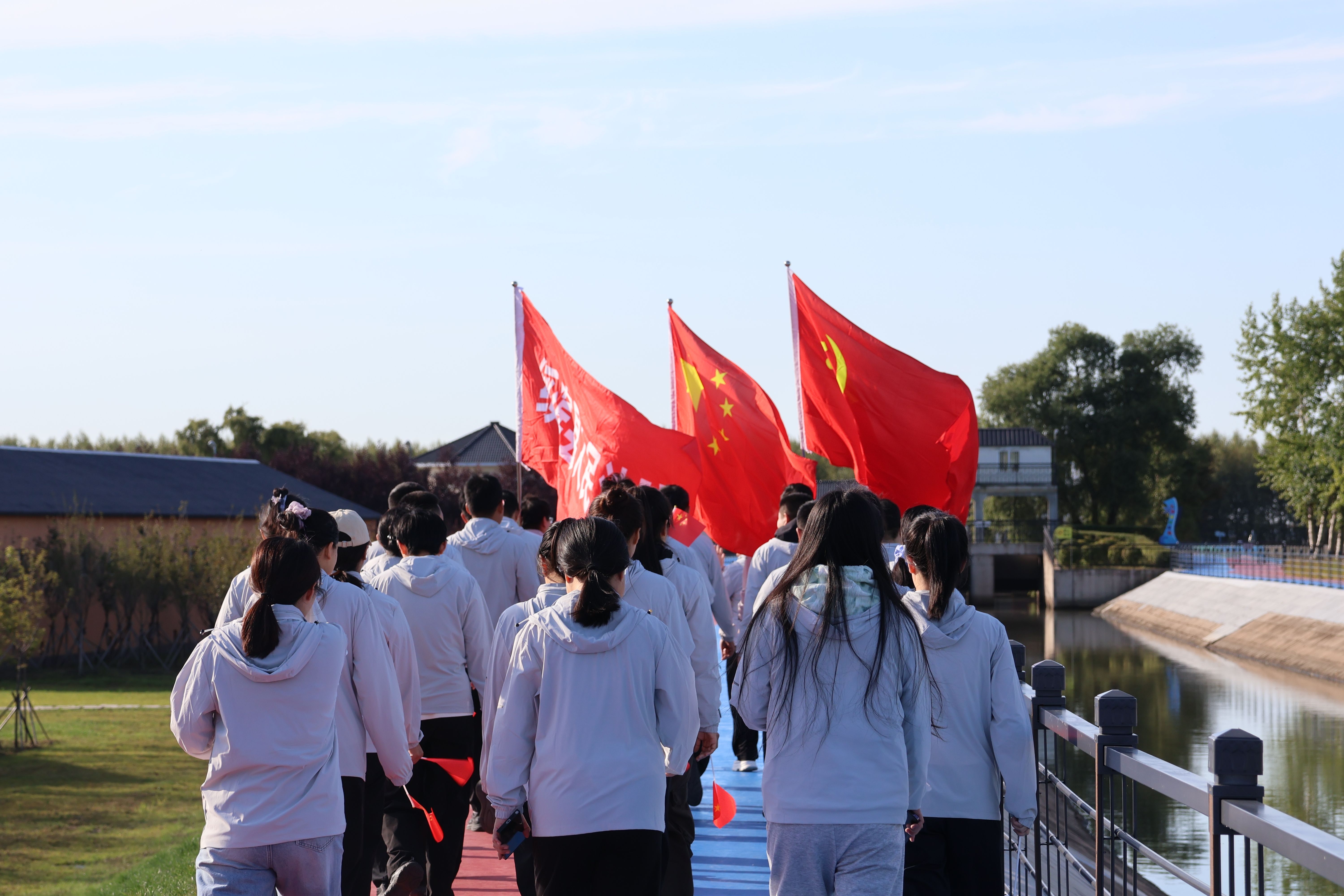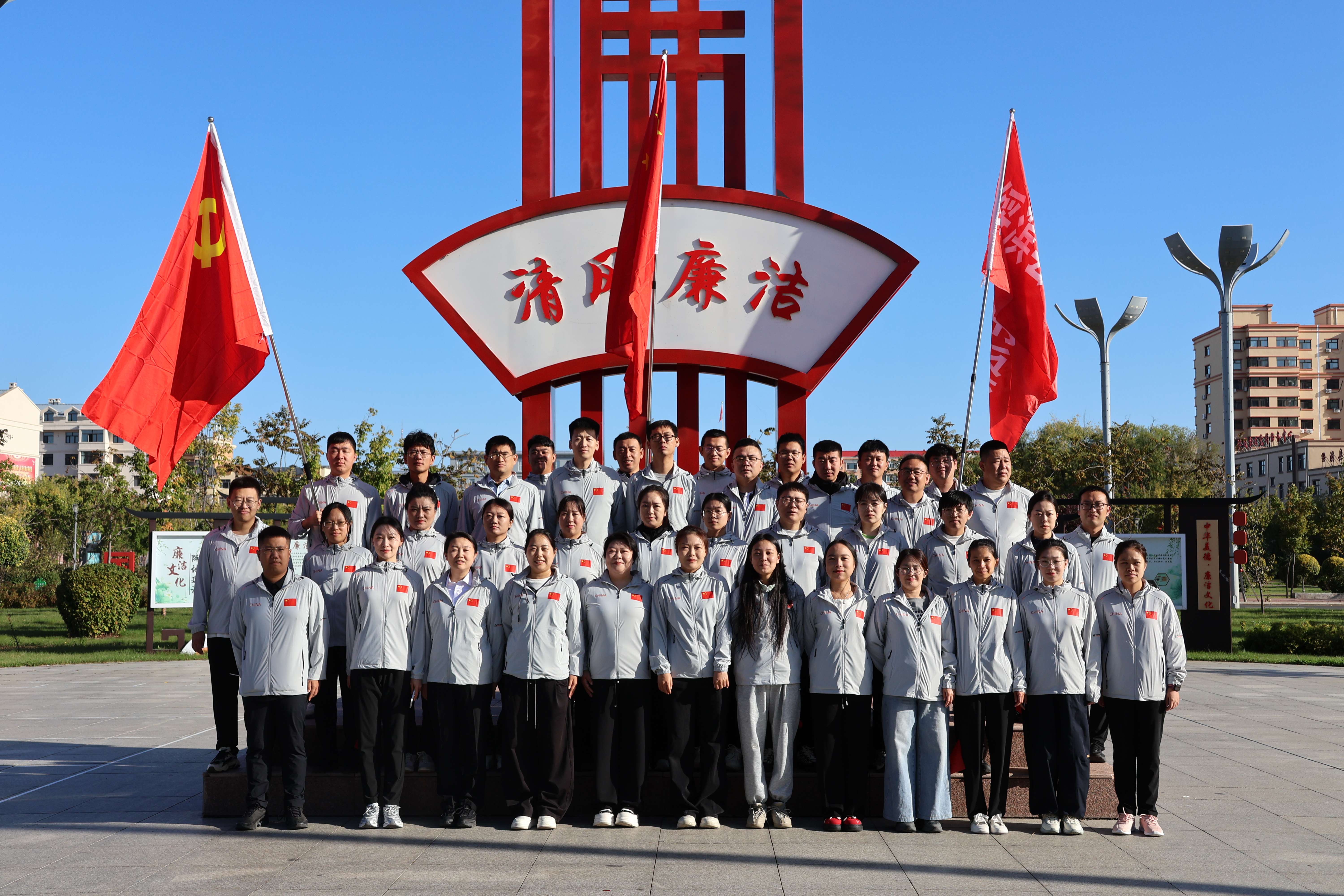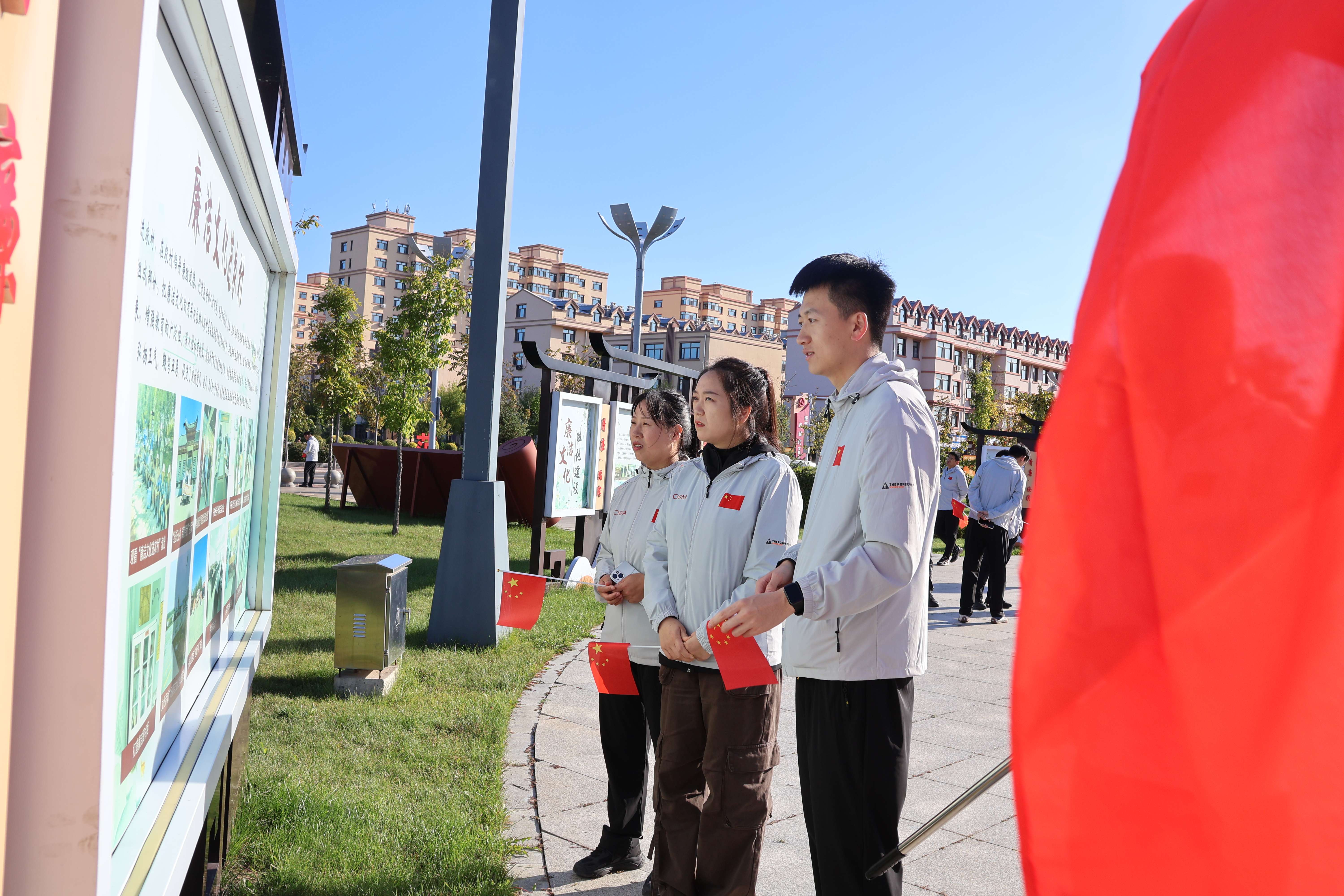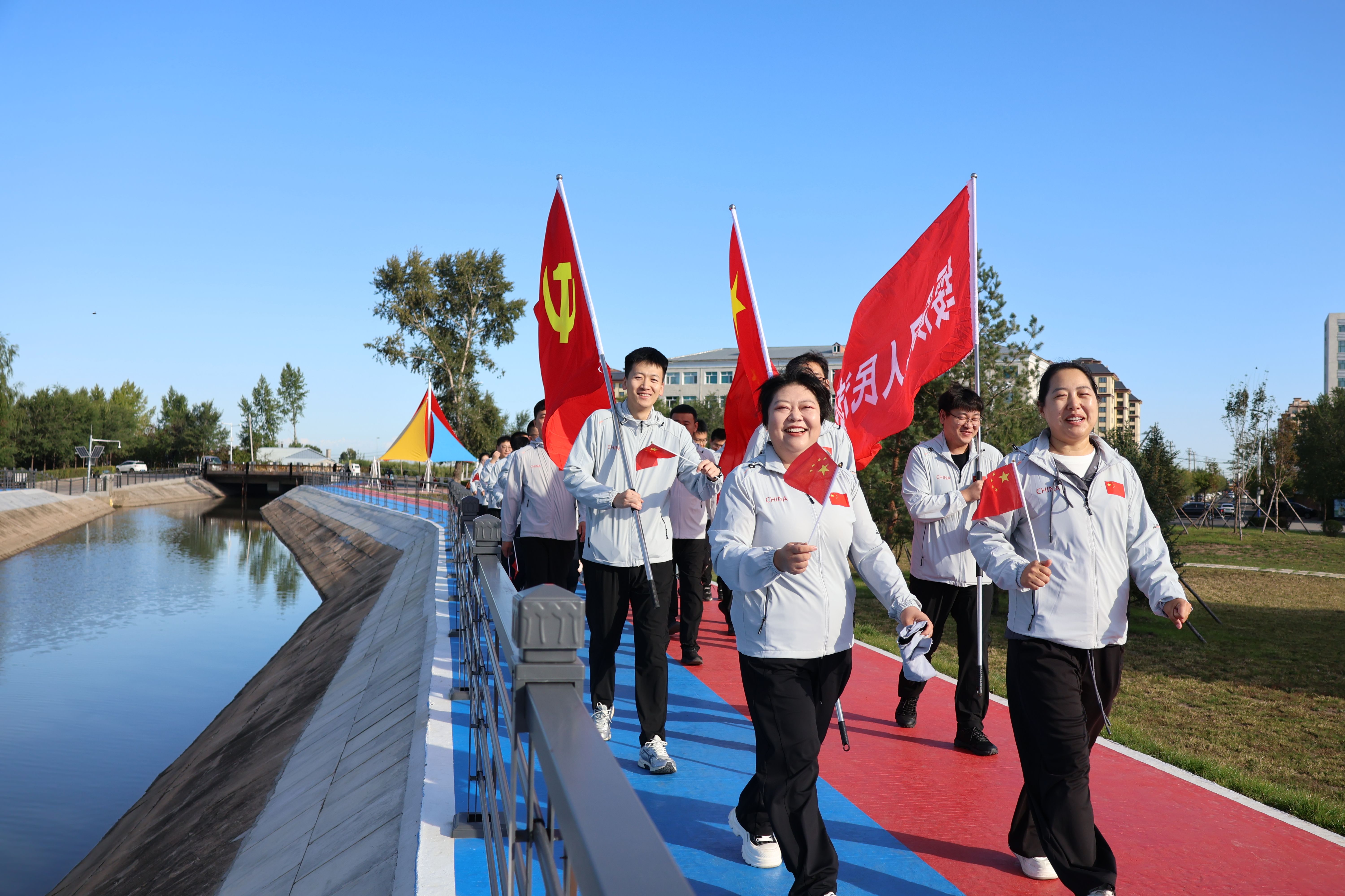 活动当日,阳光明媚,微风轻拂,党旗、国旗、院旗在队伍前方猎猎飘扬。干警们身着整齐制服,手持小红旗,迈着矫健步伐沿既定路线行进。沿途先后经过滨河花海、3D 涂鸦步道、廉政文化广场等地点,行至廉政文化广场时,大家驻足观看,在浸润式教育中再次绷紧“纪律之弦”,强化遵纪守法的内在自觉与行动自觉,时刻牢记法院干警身份,筑牢拒腐防变思想防线,立志做清正廉洁的践行者。离开广场后,队伍继续前行,干警们在欣赏沿途美景的同时,深切感受家乡发展变化带来的幸福生活,进一步坚定为人民服务的初心,最终经过一个小时的徒步快走抵达活动终点。