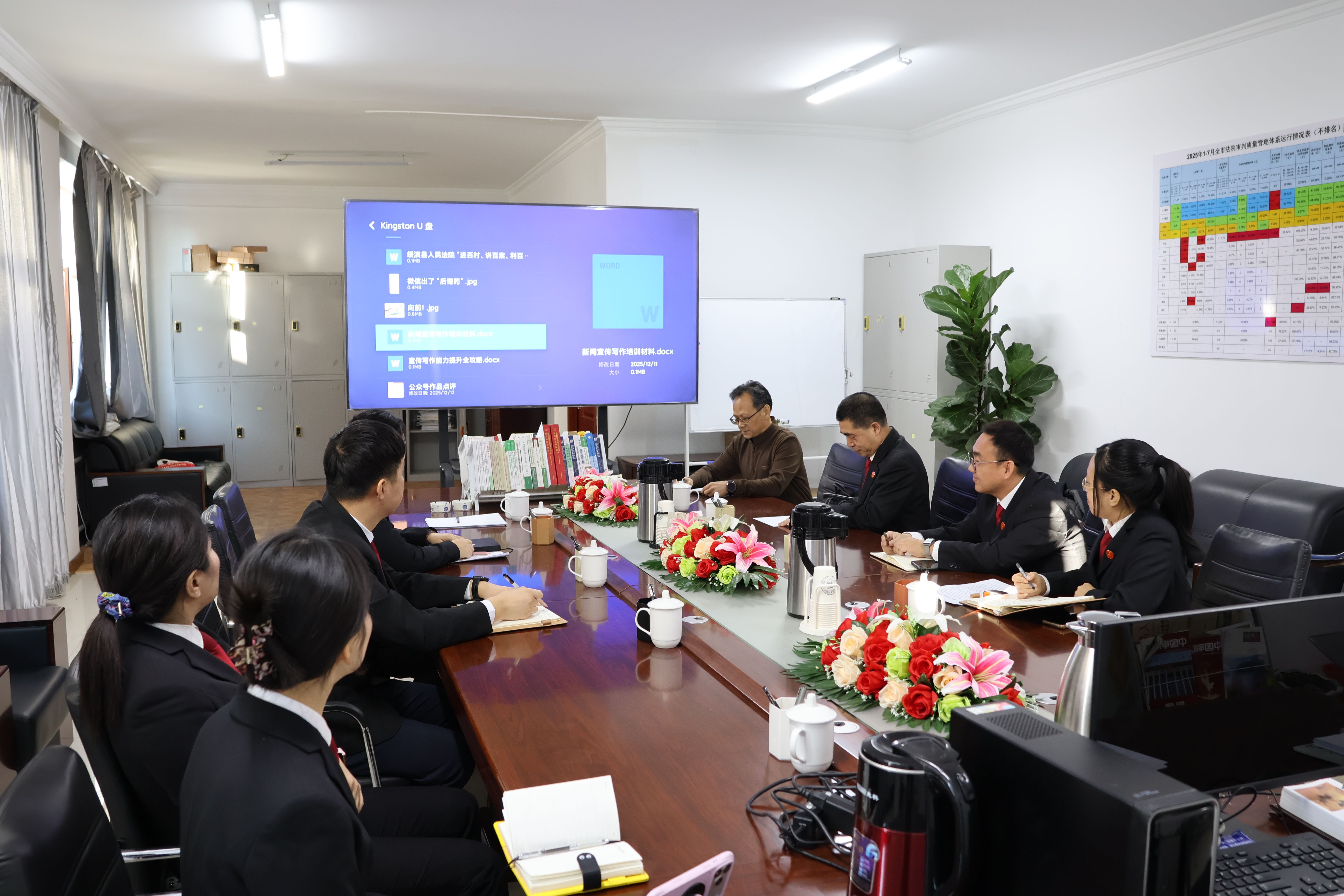 讲座中,姜道龙结合自身多年的新闻采编经验,从新闻要素、标题创新、结构布局到不同行文风格等方面进行了全方位的讲解。同时,他结合县法院宣传稿件,现场指导给出修改建议,并通过优秀新闻案例对比,让干警直观感受文化赋能对提升宣传作品感染力、传播力的重要作用。与会干警认真聆听,并仔细记录,大家纷纷表示,授课既兼顾理论深度与实操价值,更紧扣“文化铸品”要求,为今后挖掘司法文化亮点、讲好法院文化故事提供了清晰路径。